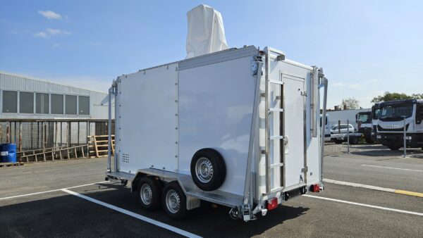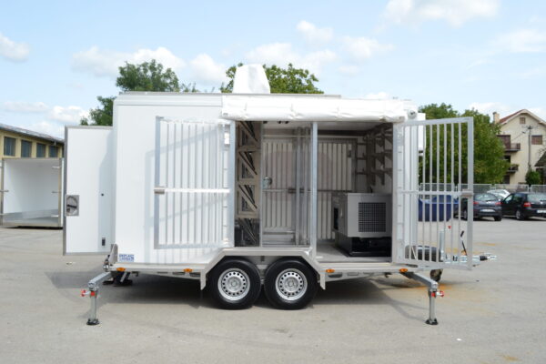 Prikolica O2 kategorije odnosno 3,5t bruto mase, sa dve osovine renomiranog proizvođača AL-KO i telekomunikacijskom antenom predstavlja specijalnu nadogradnju, koja pored AL-KO osovina i rude sa šapom istog brenda, na kvalitetnom podvozu ima nadogradnju izrađenu od izolovanih kompozitnih sendvič panela, naše proizvodnje. Pneumatici: 195/50R14C.