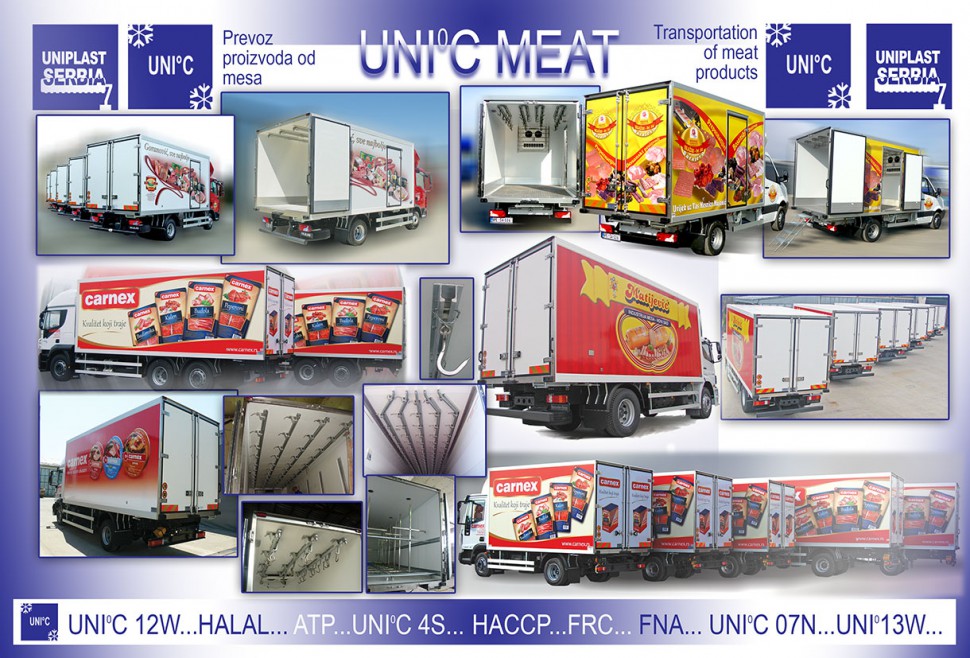 Specijalna termoizolovana hladnjača za prevoz mesa – prevoz krovnog tereta. Snaga panela je dvostruka: veoma dobro izolovan panel, krovno visokonosiv, gde je komora nosivosti 4,5t po metru dužnom, što je cca 27t za dužinu od 6 metara, čime se pokriva mogućnost ugradnje na svim dostupnim šasijama kamiona.