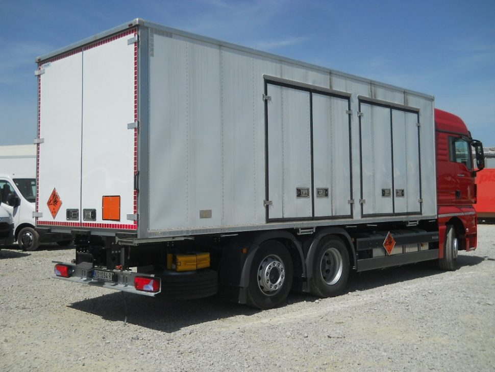 Specijalna nadogradnja za prevoz eksploziva, klasa prevoza ADR EXIII, zaštitićena iznutra negorivim panelom.