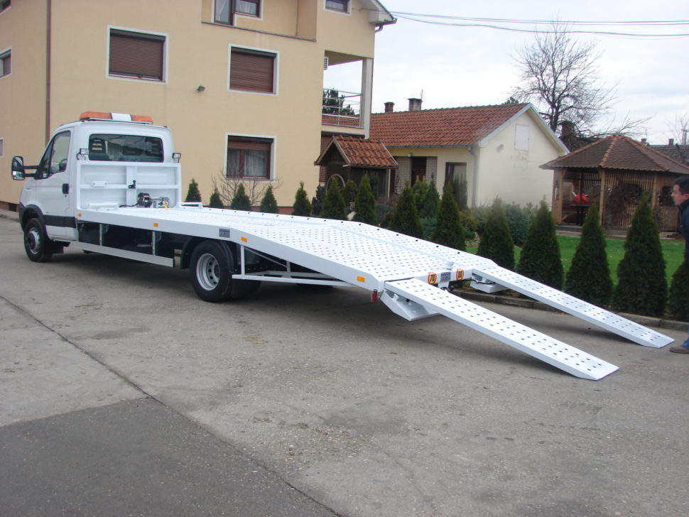 Čelični navozi za prevoz automobila, građevinskih mašina i kamiona, sa čeličnom platformom.